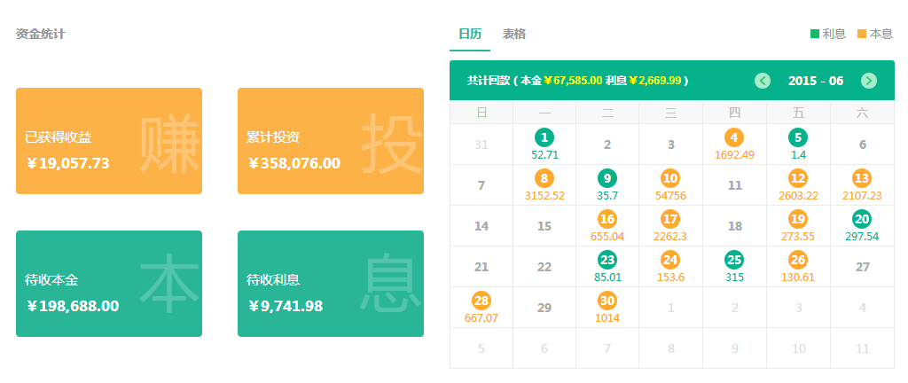 现在的版改的没办法适应,一笔资金还有几笔到期(日历上只显示绿色是利息,黄色是本息),都没办法一看就明了,还要另外点资金记录查看,好费时间。越改越繁锁。希望那个帐户预览重新改版一下
