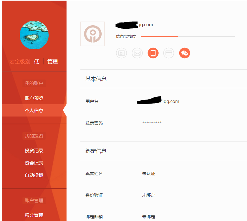 如图所示,只剩手机和微信认证的信息,其他信息全部丢失。而手机App里的认证信息倒是一切正常。